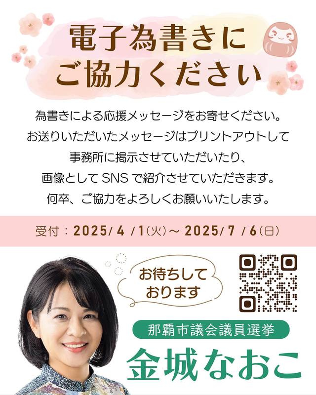#金城なおこ #那覇市議会議員選挙 #電子為書き #応援メッセージ #那覇市 #福祉のまち那覇へ