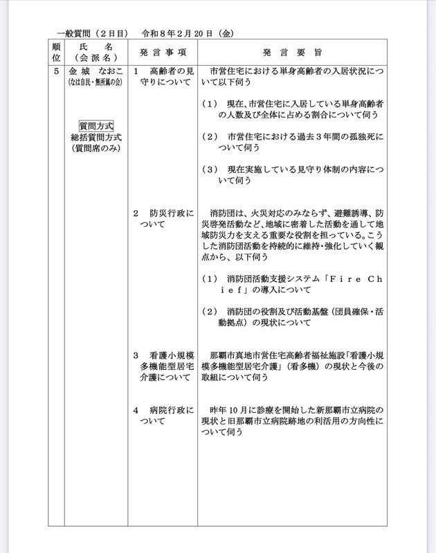 ホーム>政党・政治家>金城 なおこ (キンジョウ ナオコ)>【一般質問終了のご報告】令和8年2月定例会の一般質問を終えました。