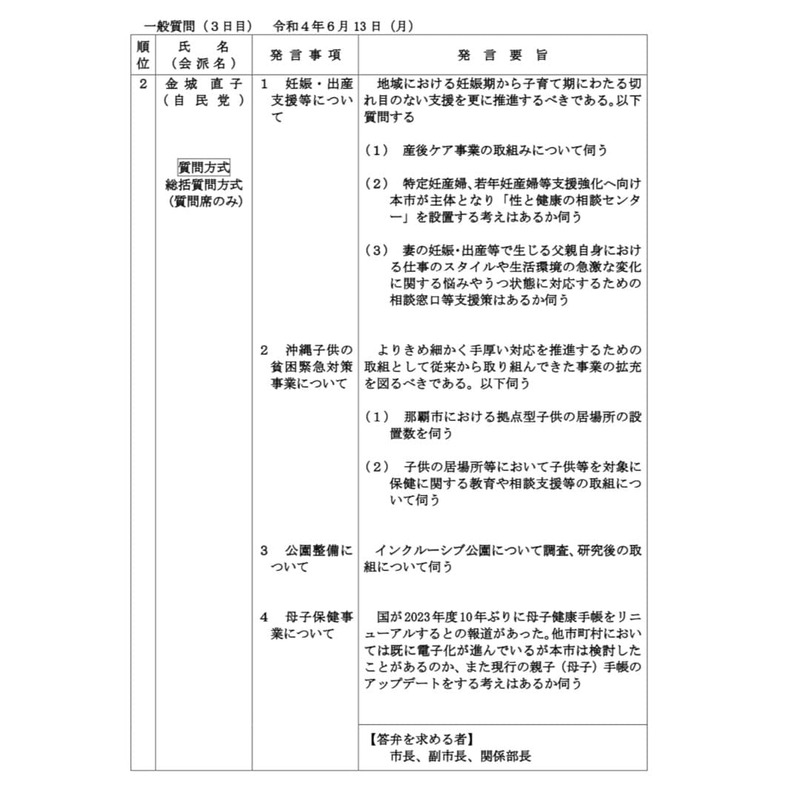 ホーム>政党・政治家>金城 なおこ (キンジョウ ナオコ)>【令和4年6月定例会】一般質問2日目でした。