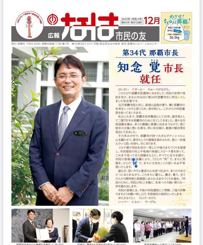 知念覚市長、就任あいさつでは物価高騰対策。