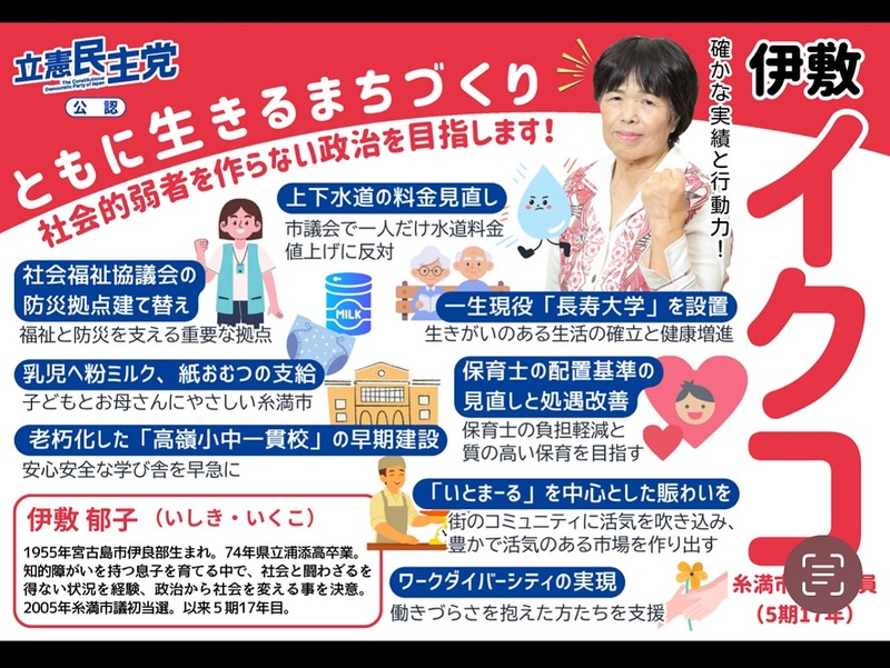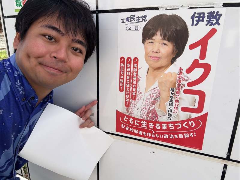 ホーム>政党・政治家>普久原 あさひ (フクハラ アサヒ)>昨日から糸満市議会議員選挙(11月16日投開票)がはじまりました🗳️立憲民主党公認の伊敷イクコ...