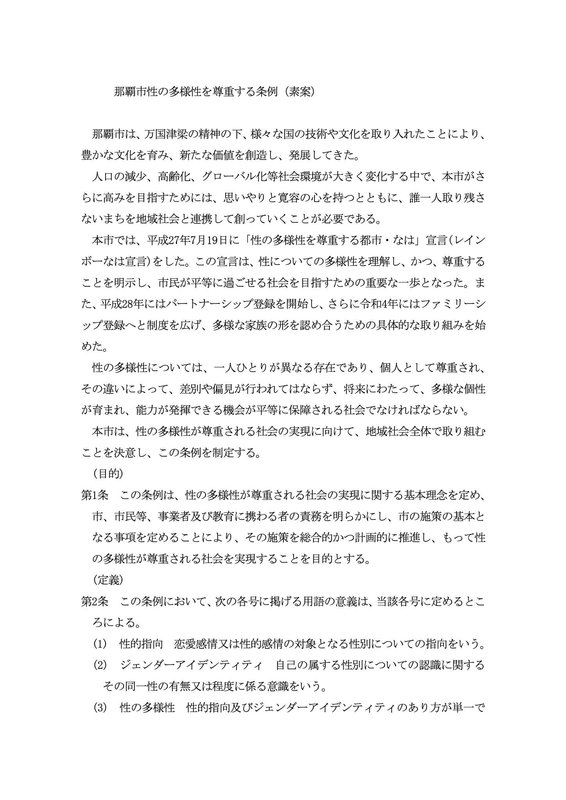 ホーム>政党・政治家>普久原 あさひ (フクハラ アサヒ)>「那覇市性の多様性を尊重する条例(素案)」へのパブリックコメント(市民意見)を募集しています🌈...