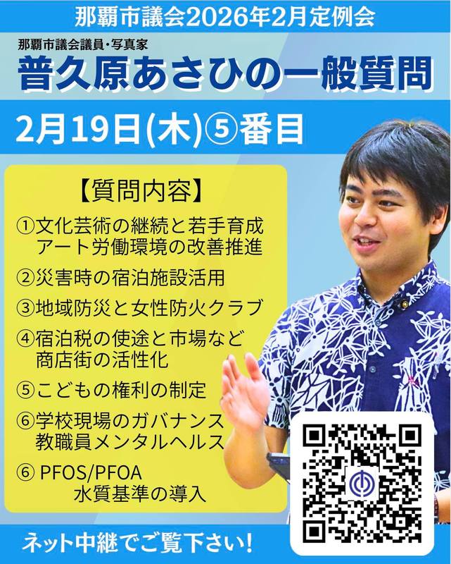 ホーム>政党・政治家>普久原 あさひ (フクハラ アサヒ)>はいさい☀️明日(19日)那覇市議会2月定例会で一般質問を行います🙋🏻順番は5番目ですので13...