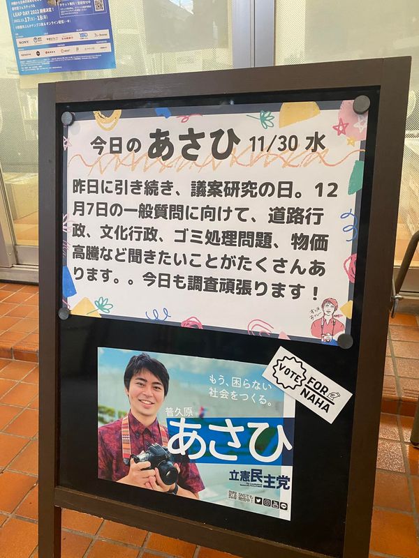 「普久原 あさひ」をご支援いただける方は、是非個人献金をお願い申し上げます。※選挙ドットコム会員登録(無料)が必要です。
