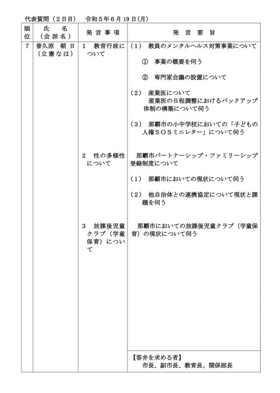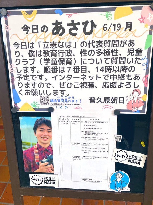 ホーム>政党・政治家>普久原 あさひ (フクハラ アサヒ)>はいさい☀️2023年6月19日(月)の#今日のあさひです✨本日は代表質問2日目です!僕は「#...