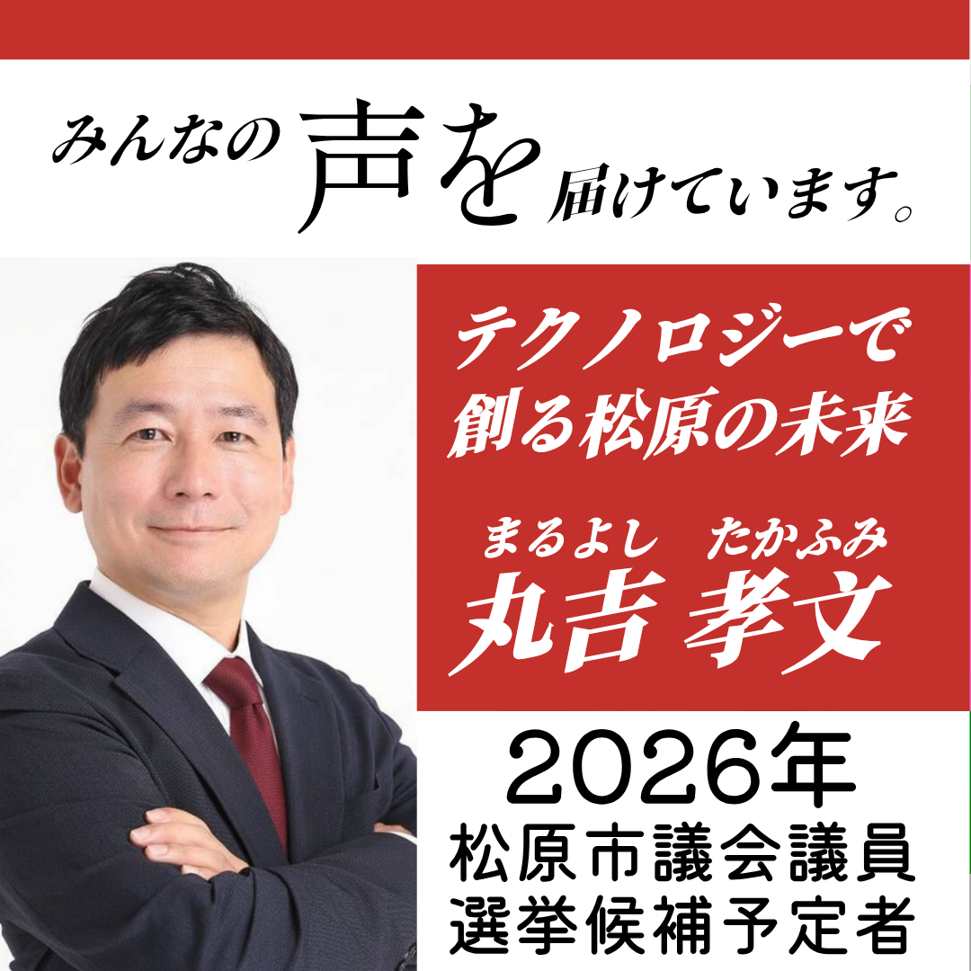 ホーム>政党・政治家>丸吉 孝文 (マルヨシ タカフミ)>【松原市議会議員選挙2026候補予定者】「AIで松原市の見える化」必要な情報がスマホに届く街へ。