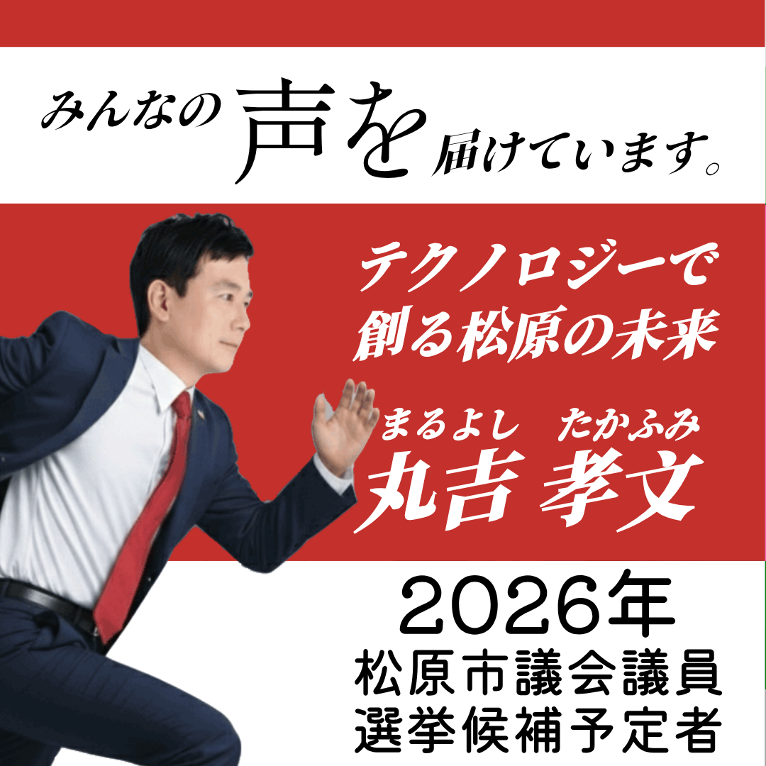 ホーム>政党・政治家>丸吉 孝文 (マルヨシ タカフミ)>【松原市会議員選挙2026候補予定者】AIで松原の子どもたちに「最適な学び」と「安心」を