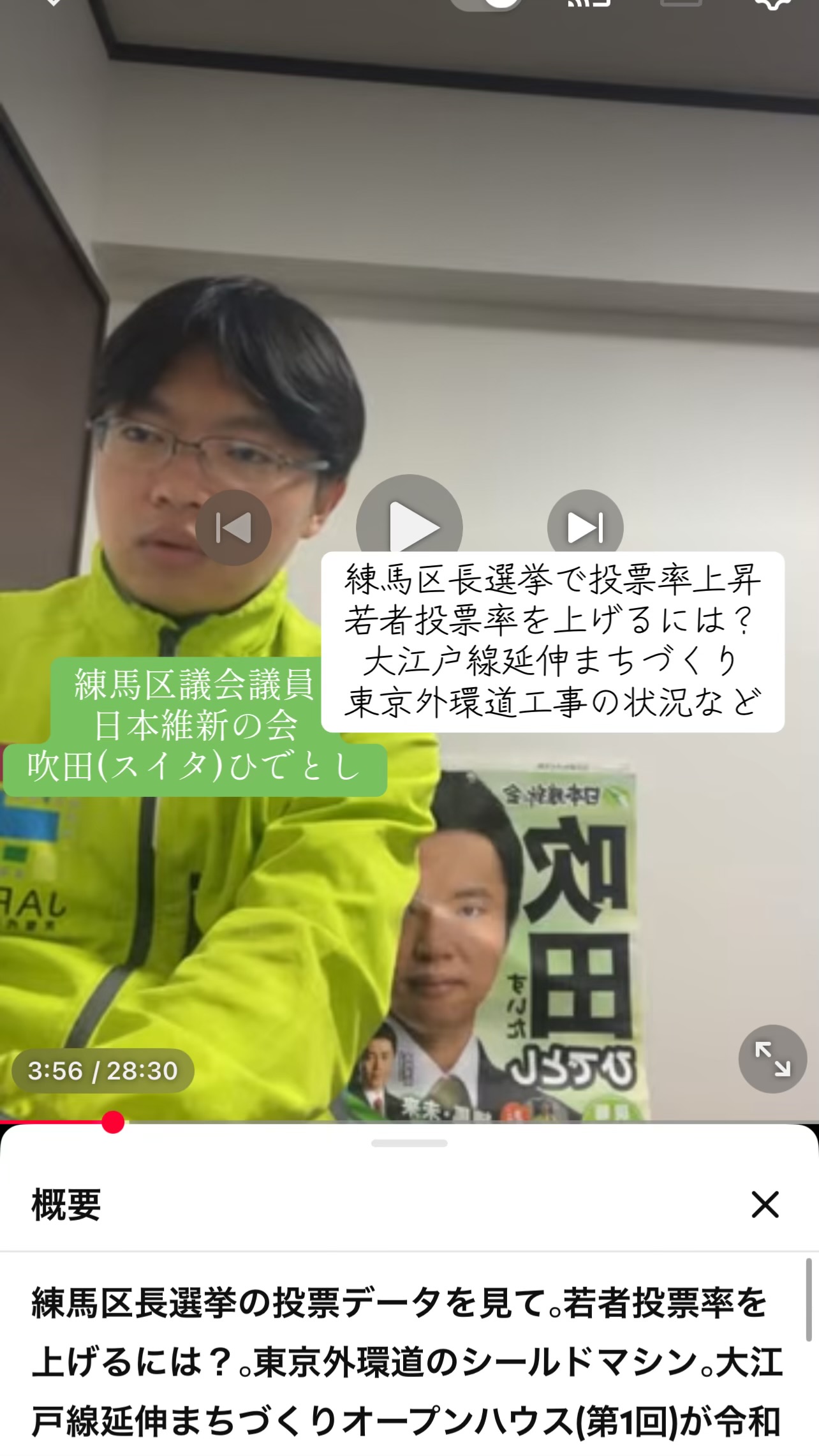 ホーム>政党・政治家>吹田 ひでとし (スイタ ヒデトシ)>練馬区長選挙投票データから若者投票率を上げるには。東京外環道シールドマシンなど【吹田ひでとし】(維新