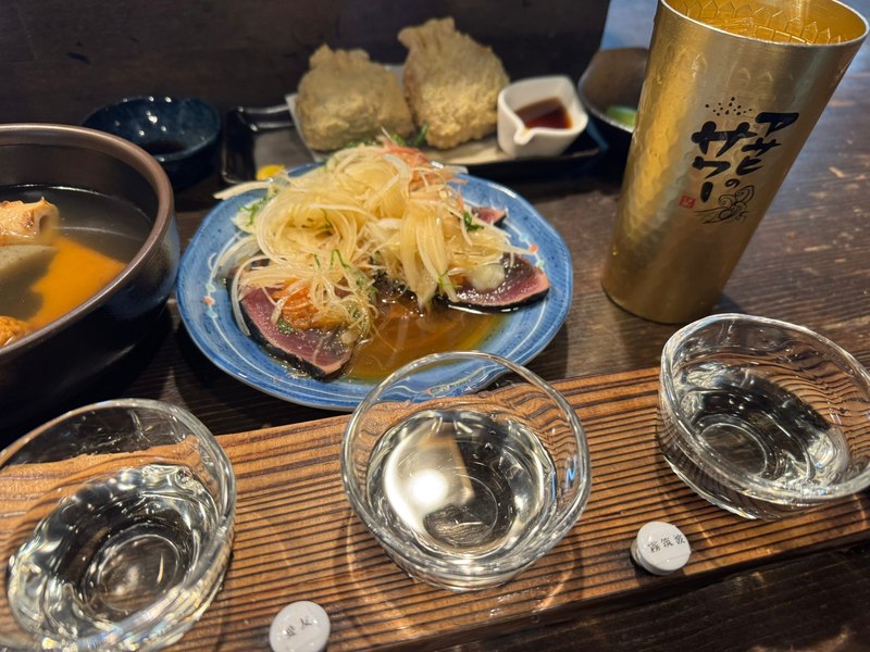 p.s.手前地酒飲み比べセット、霧筑波という酒がくそ美味かった。その後方、かつおのたたき、くそ美味かった!くそ日本酒にあいまくり‼️