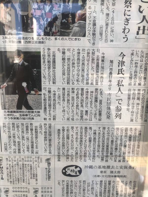 市長の私人としての参拝を批判する市民団体は、この報道が事実ならば、憲法上、違憲な人権侵害の実現を要請しているものと評価されます。