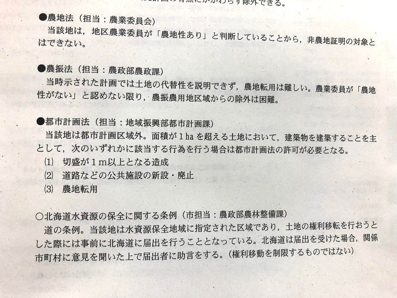 ただし、今後、農業委員会が何らかの事情で農地性なしと判断したり、農政部がこれに基づき規制を解除したりする可能性は完全には否定できません。現に、道議会議員らがそのような働きかけをしているとの情報もあります。