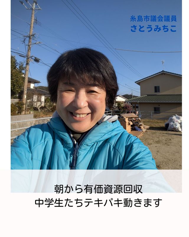 ホーム>政党・政治家>さとう みちこ (サトウ ミチコ)>今日は朝から中学校の有価資源回収の日。