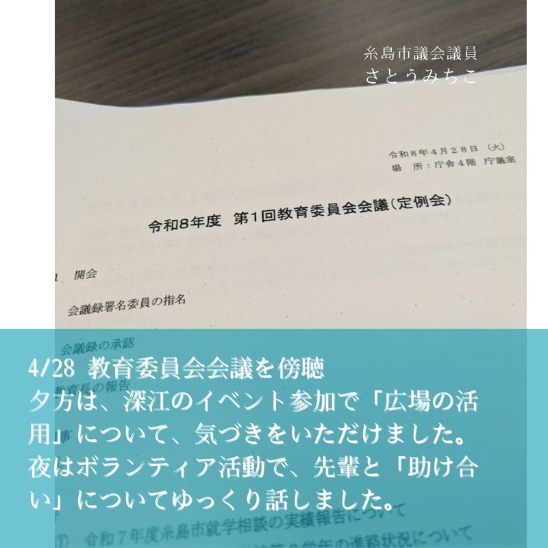 ホーム>政党・政治家>さとう みちこ (サトウ ミチコ)>2026.4.28■教育委員会会議を傍聴しました。