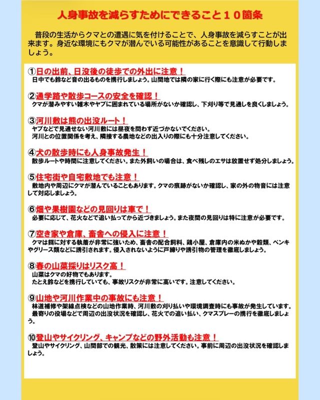 そして、クマを人の生活圏に近づけないためには、日頃の備えも大切です。