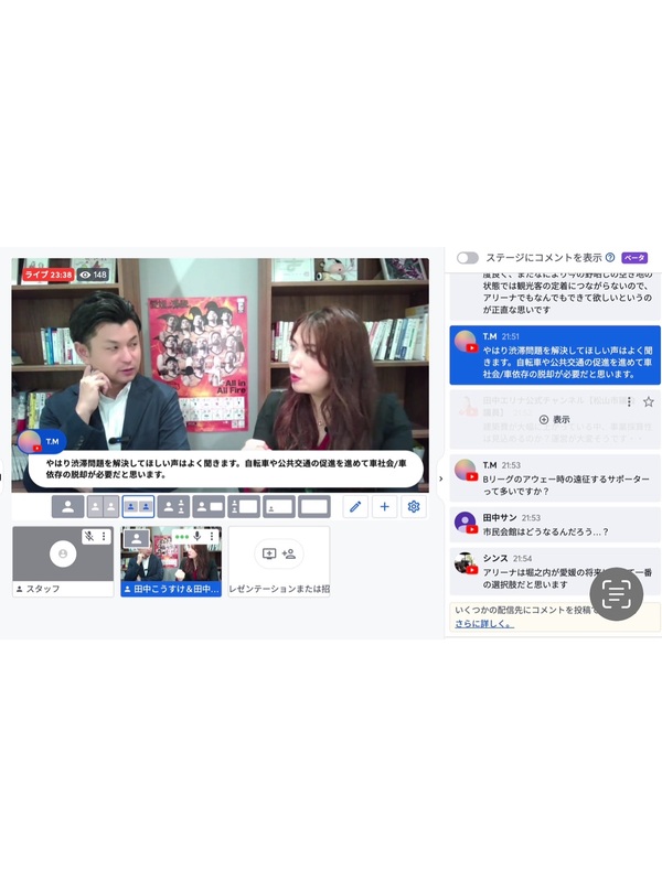 そして試合後には、松前町の田中町長とアリーナ構想についてのYouTubeライブ配信を実施。