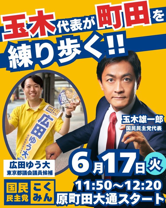 明日は玉木代表が町田を練り歩く滅多にない機会です!