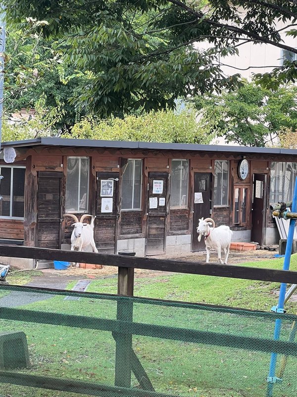 学校の中庭にヤギがいる、