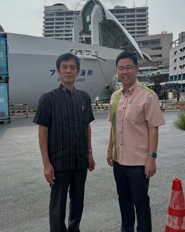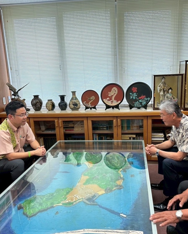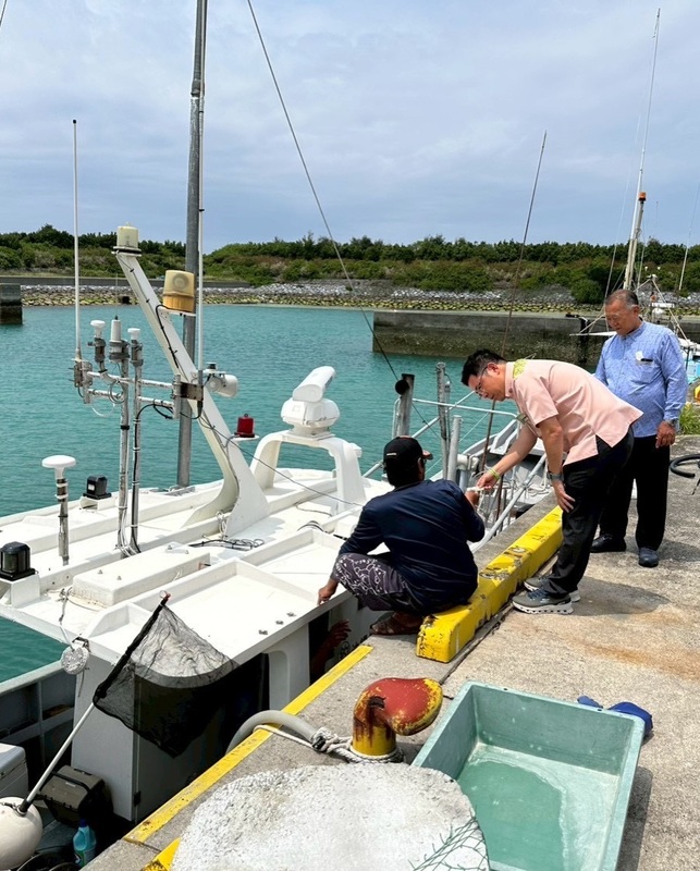 出発前の泊港にて桃原村長とお話し、島では渡口副村長や渡口議長らと意見交換させていただきました。