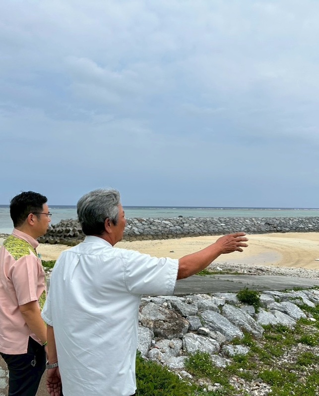 また、島内を回り、離岸堤の影響でビーチに砂がたまっていることや、伝建地区の無電柱化、通信環境や空き家活用などの課題を実際に見聞きしてきました。