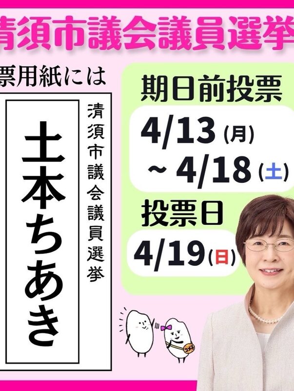ホーム>政党・政治家>土本 ちあき (ツチモト チアキ)>本日より期日前投票も始まりました。