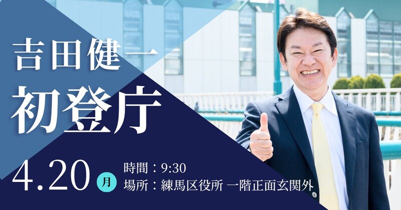 4月20日(月)9:30 吉田健一新練馬区長が、初登庁します!