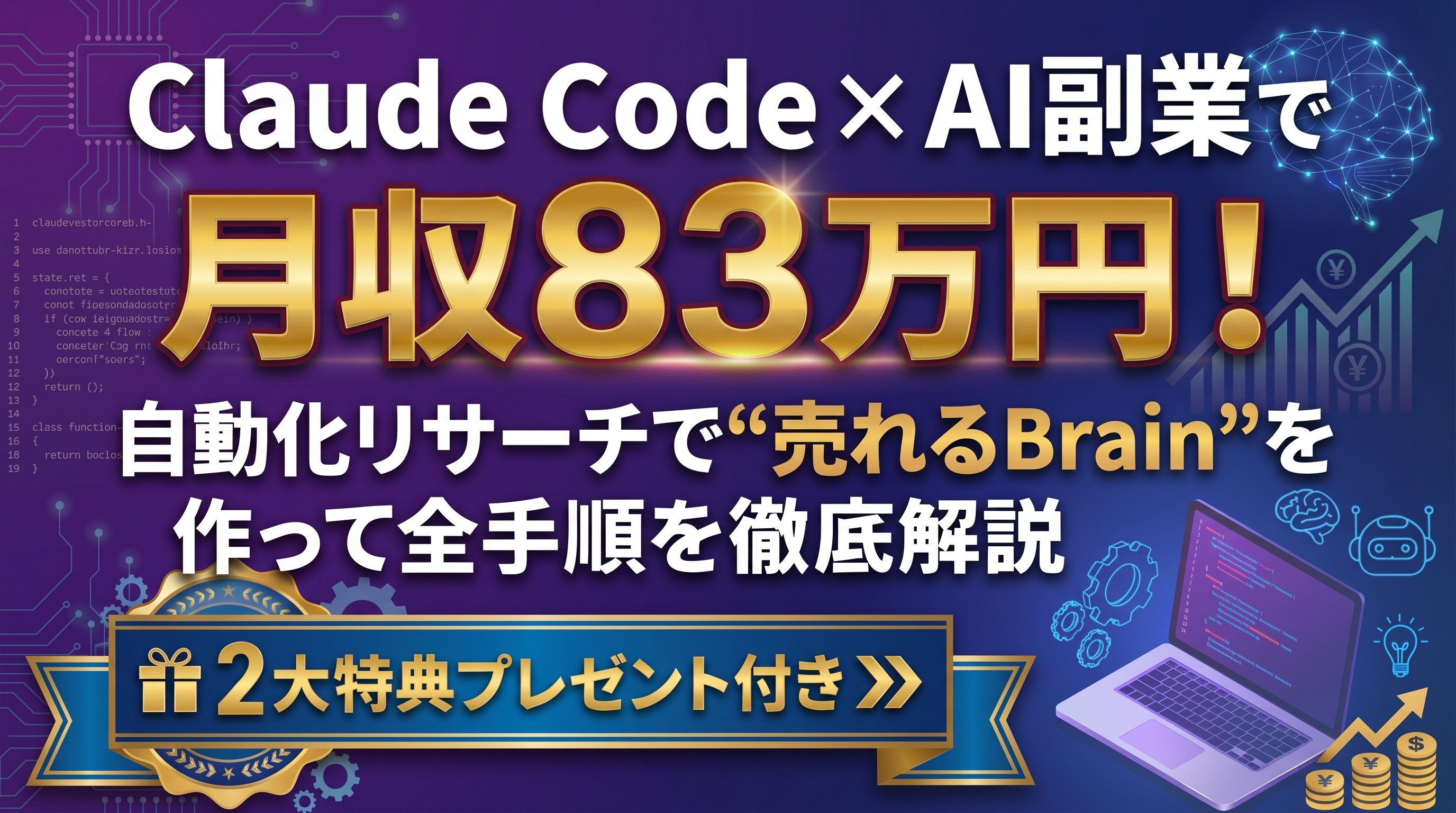 いま、Claude Codeは副業界隈で最も注目されているAIツールです。Web制作の自動化、記事生成、データ分析。できることの幅が爆発的に広がっている。でも、ほとんどの人は「すごいのは分かるけど、どうやって稼ぎに繋げるのか分からない」という状態で止まっている。