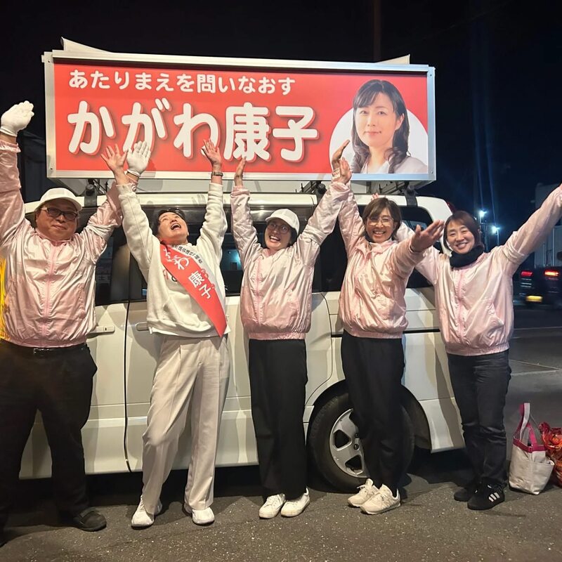 ホーム>政党・政治家>かがわ 康子 (カガワ ヤスコ)>選挙カーによる活動終了🚘️ケガもなく(康子以外)無事に事務所に到着しました‼️お手を振ってくだ...