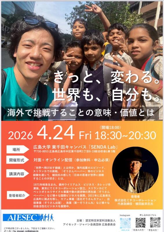 場所:オンラインor広島大学 東千田キャンパス『SENDA Lab』