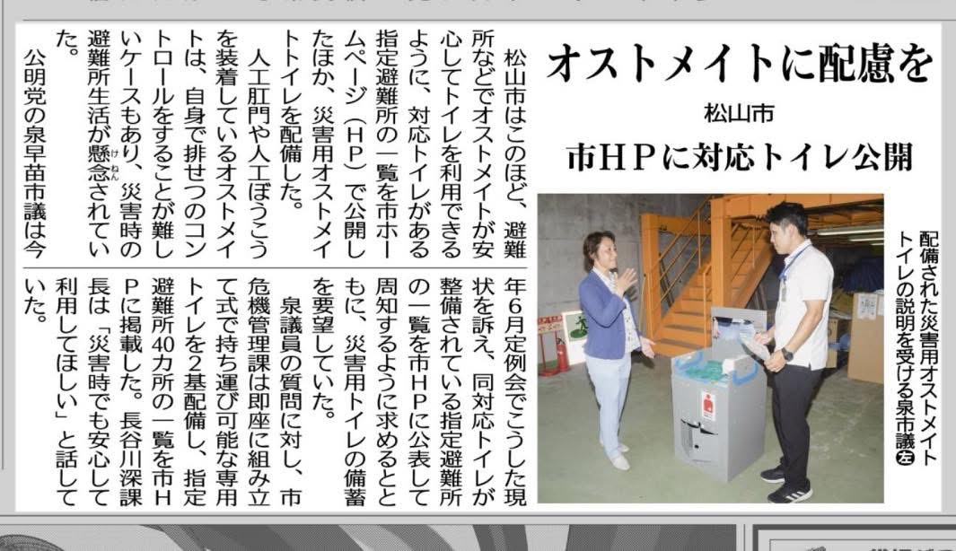 松山市では、災害用オストメイトトイレを配備しています。
