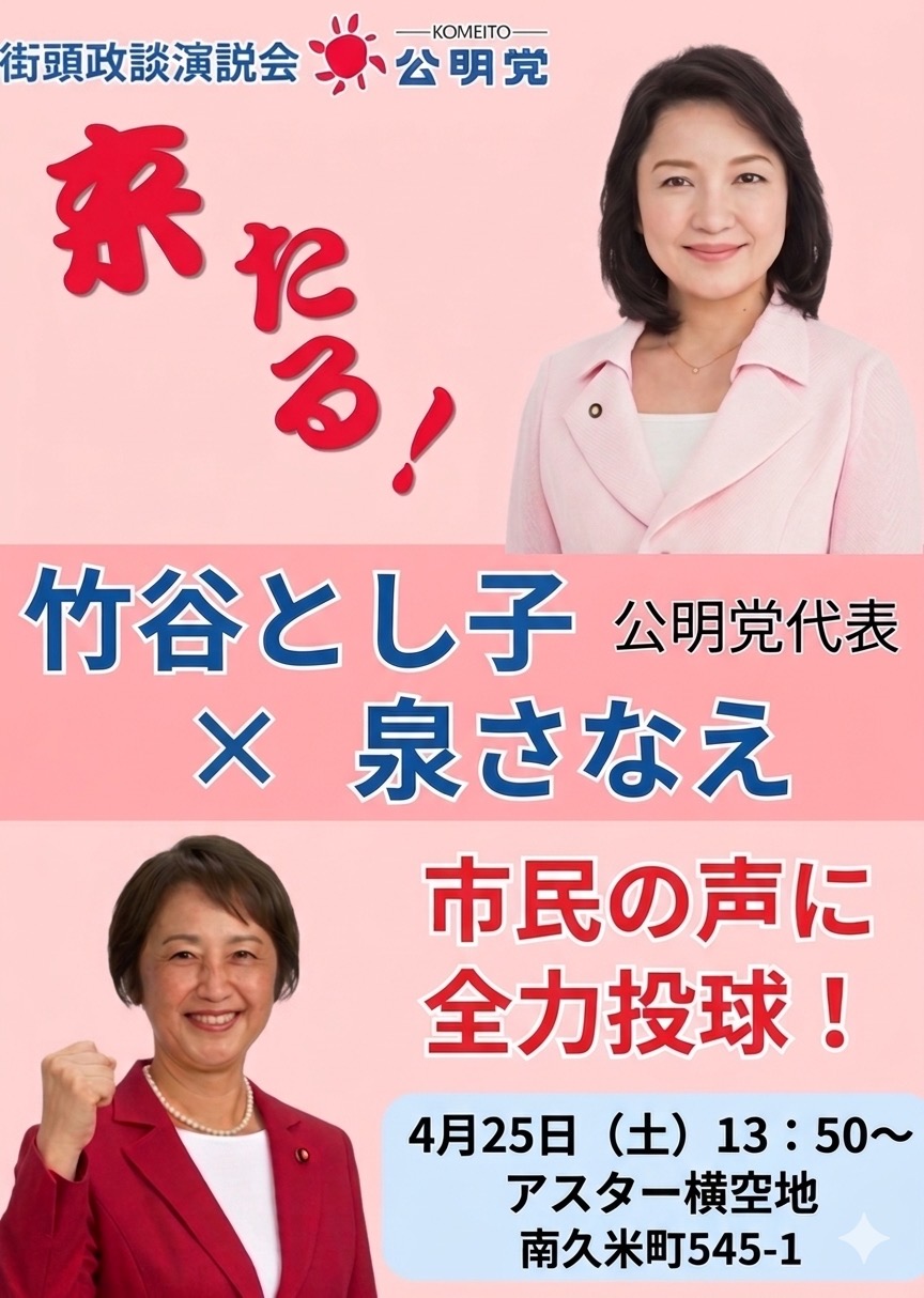 本日お忙しい中、公明党代表の竹谷代表が応援に駆けつけてくださいます!