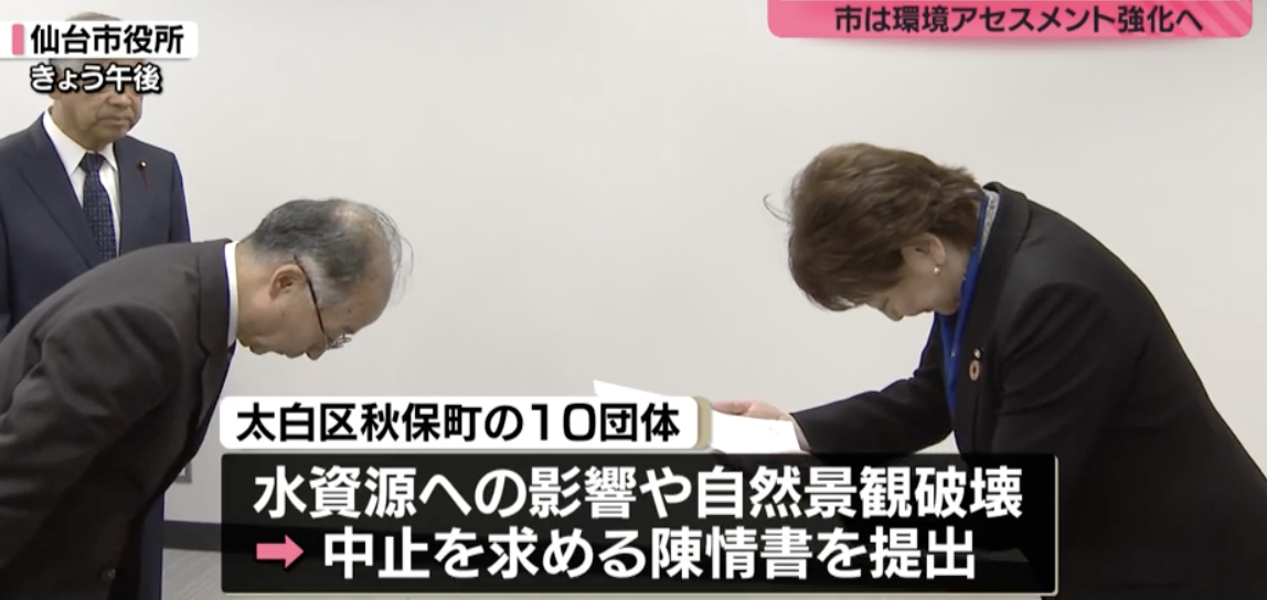 最終的に2500通にものぼる提出がありました。2024年6月13日に、意見書募集の途中段階でしたが、1200枚の意見書を仙台市環境局を通じて市長宛に提出し、多くの市議・県議も同席くださいました。私たちは報告書を作成し、新聞折込などを通じて、秋保の町民の皆様に報告させていただきました。国・県・市で連携を図り状況把握に努めるという趣旨の答弁をいただきました。