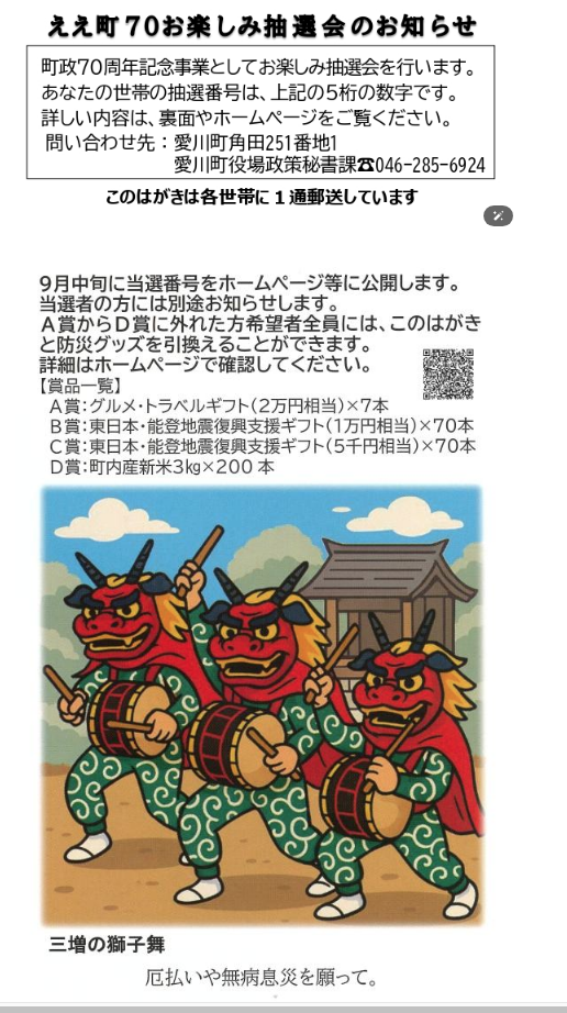 【チャンスだけは平等】小野澤町長が選挙に使い、今も度々使う言葉「誰一人取り残さない」。 SDGsの基本理念で、政府や各自治体が好んで使う言葉です。今回の「ええ町70お楽しみ抽選会」は、チャンスだけ平等にして、あたかも町民全てが得をしたように思わせる「品性のない政策」と考えます。実際に利益を得るのは一部の当選者だけです。このような政策を平然と行う行政に疑問を持つ方が増えることを願っております。