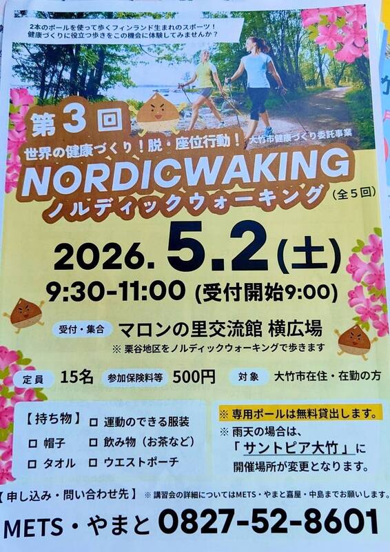 #大竹市 #健康づくり #ノルディックウォーキング #晴海臨海公園 #マロンの里 #生涯スポーツ #地域活動
