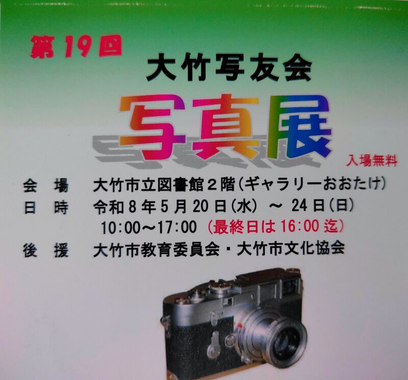大竹市立図書館にて、大竹写友会の皆さんによる「第19回 大竹写友会 写真展」が開催されます。