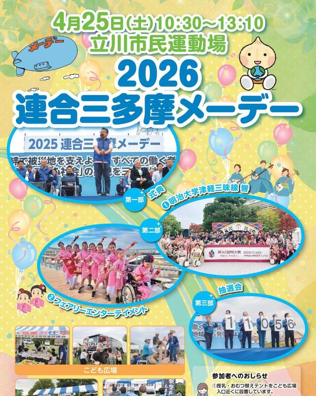 ホーム>政党・政治家>山根 洋平 (ヤマネ ヨウヘイ)>2026年連合三多摩メーデーに参加しました2026/4/25立川市で開催された連合三多摩メーデ...