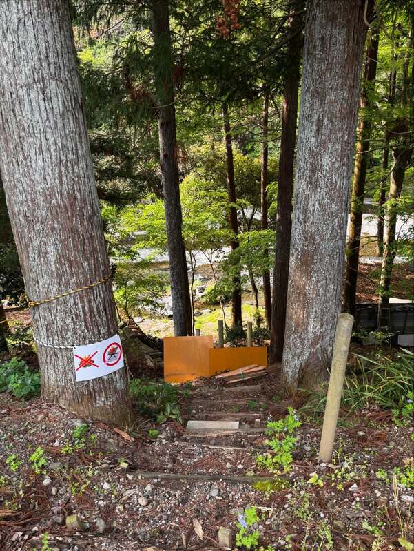 今朝は、いつも秋川をきれいにしてくださっているTさんと一緒に、地権者のご理解をいただきながら、直火禁止の啓発クリップを設置しました。