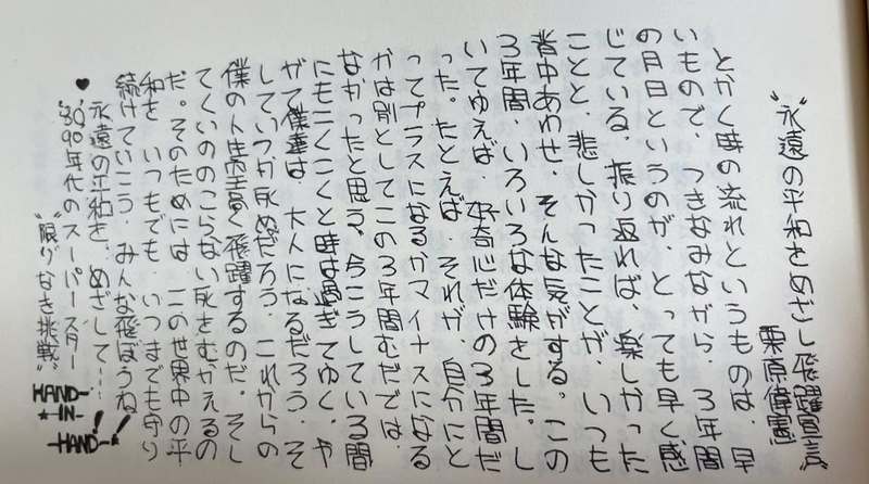 ホーム>政党・政治家>栗原 たけのり (クリハラ タケノリ)>「永遠の平和を目指して」自分の中学卒業文集です。