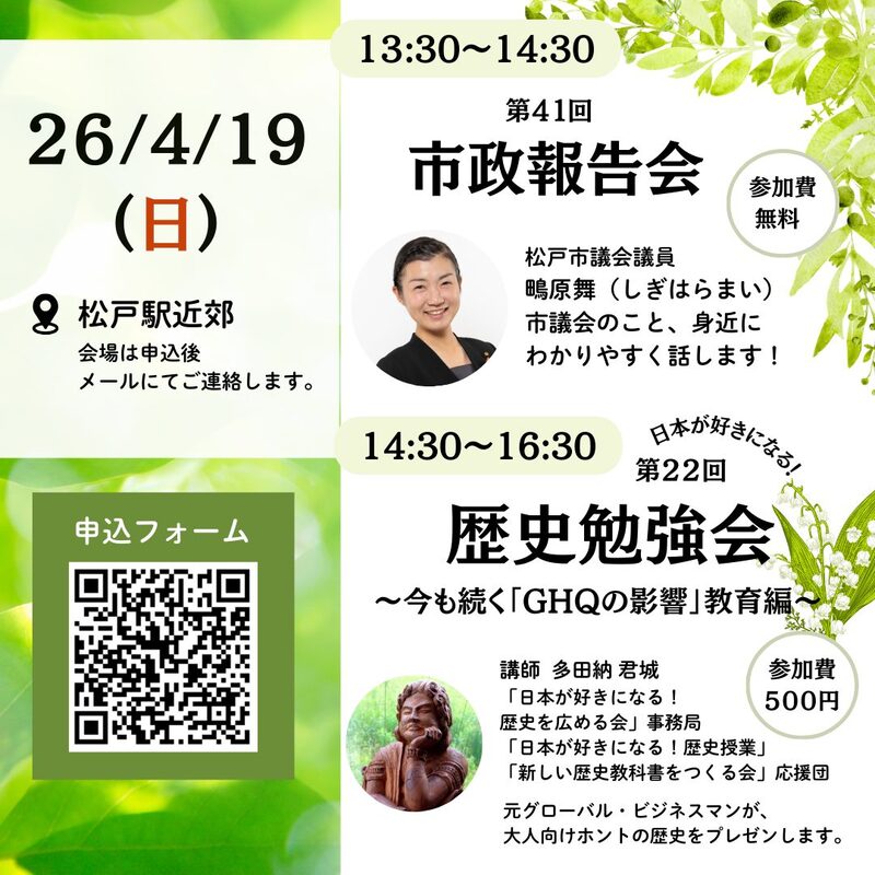 ホーム>政党・政治家>しぎはら まい (シギハラ マイ)>【市政報告会&講演会のお知らせ】今週日曜日は市政報告会&歴史勉強会です。