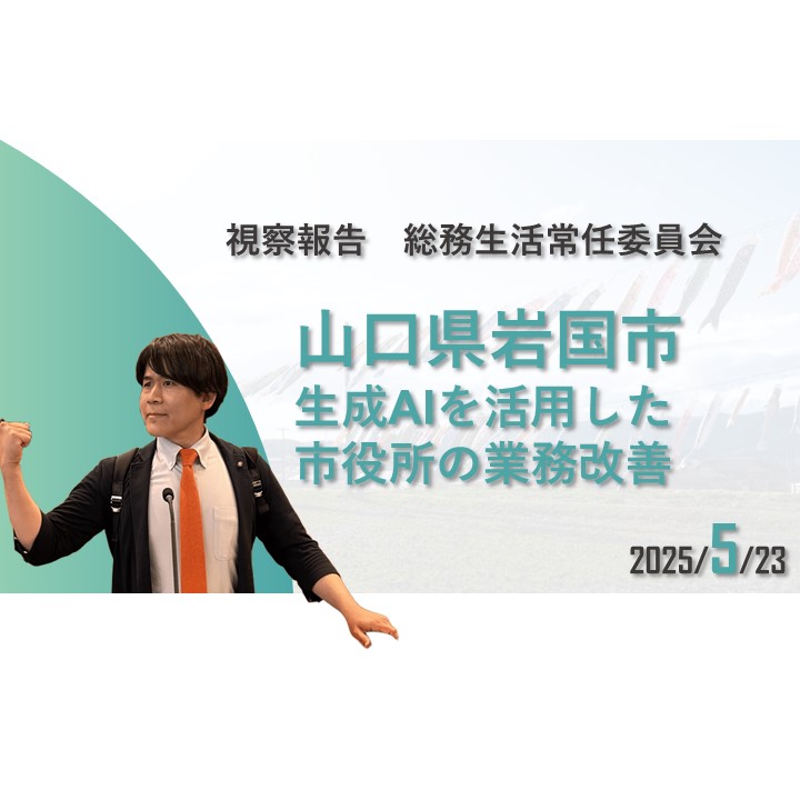 ホーム>政党・政治家>長田 たくや (ナガタ タクヤ)>【視察報告】 岩国市の生成AIを活用した業務改善について 【総務常任委員会】