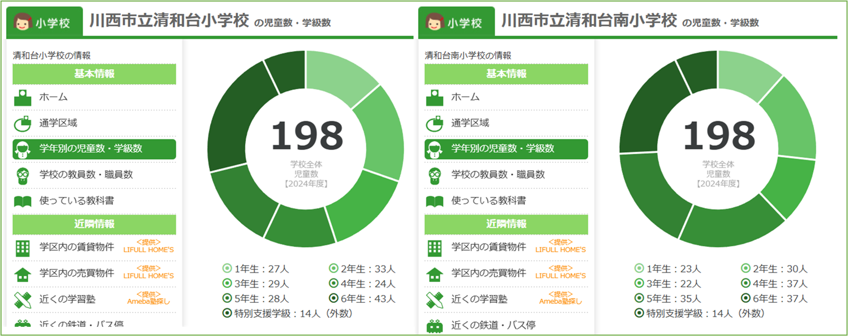川西市の清和台という地域には、小学校が2校ありますが、児童数の減少が続き、現在は1クラス規模となっています。