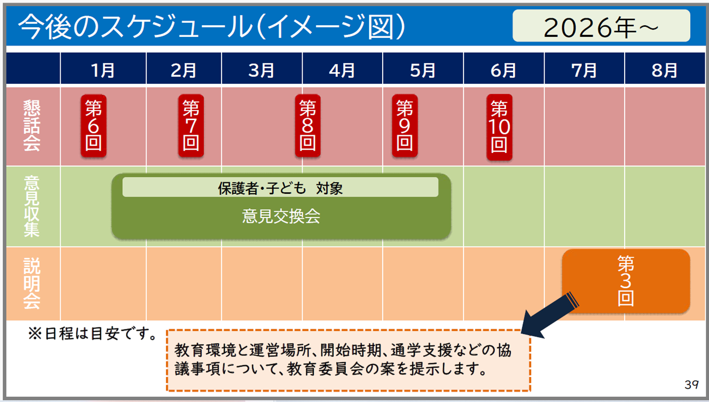 今後のスケジュールは以下の通りです。