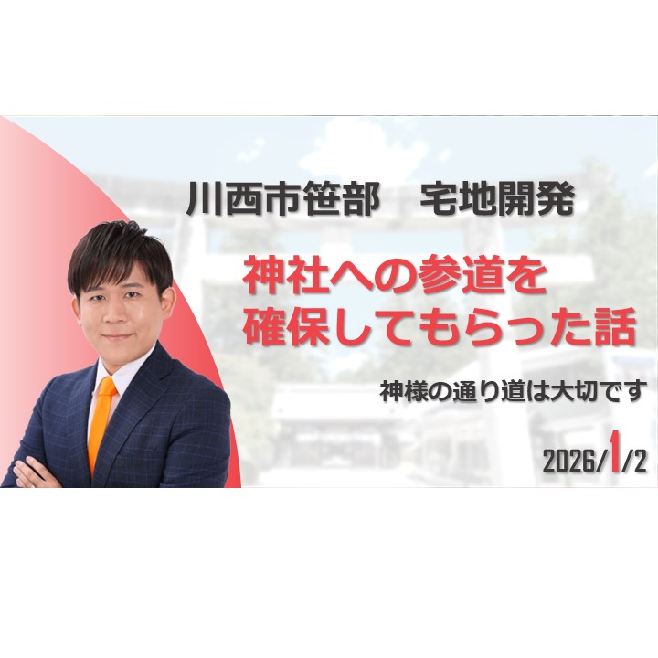 ホーム>政党・政治家>長田 たくや (ナガタ タクヤ)>【川西市笹部】 神社への参道を確保してもらった話 【宅地開発】