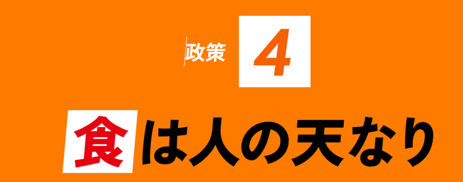 衆議院選挙2日目が終わりました。参政党が発表した政策④は、「食は人の天なり」です。