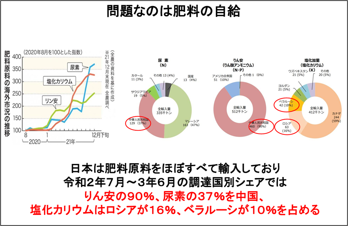 慣行農業に欠かせない肥料なども、ご覧の通りほぼ海外依存。これでは、何かあった時にどうするのでしょうか。