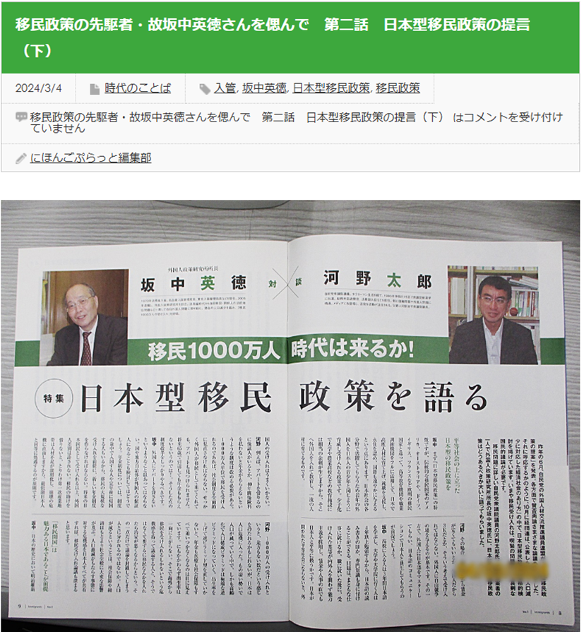 参照:移民政策の先駆者・故坂中英徳さんを偲んで 第二話 日本型移民政策の提言