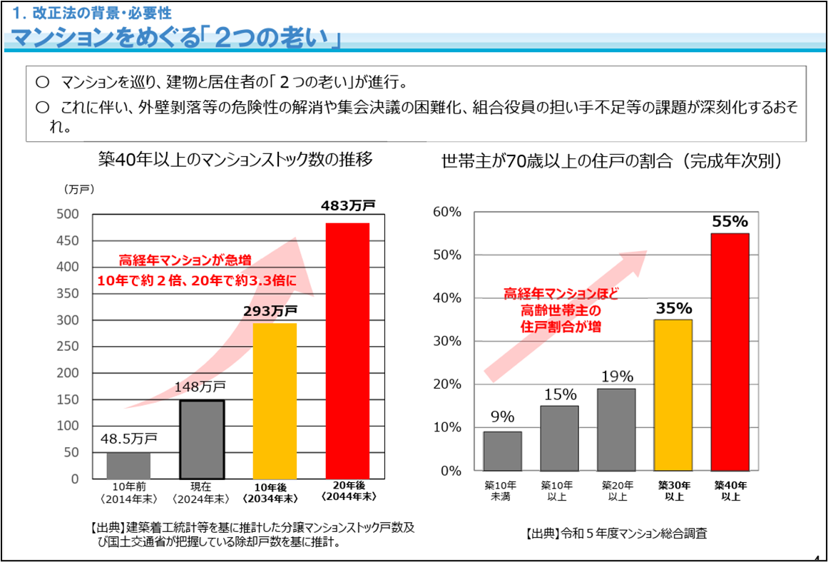 簡単に言えば、古くてやばくなったマンションを建て替えやすくする。もしくはやばくならないように修繕・改修を進めやすくするためです。