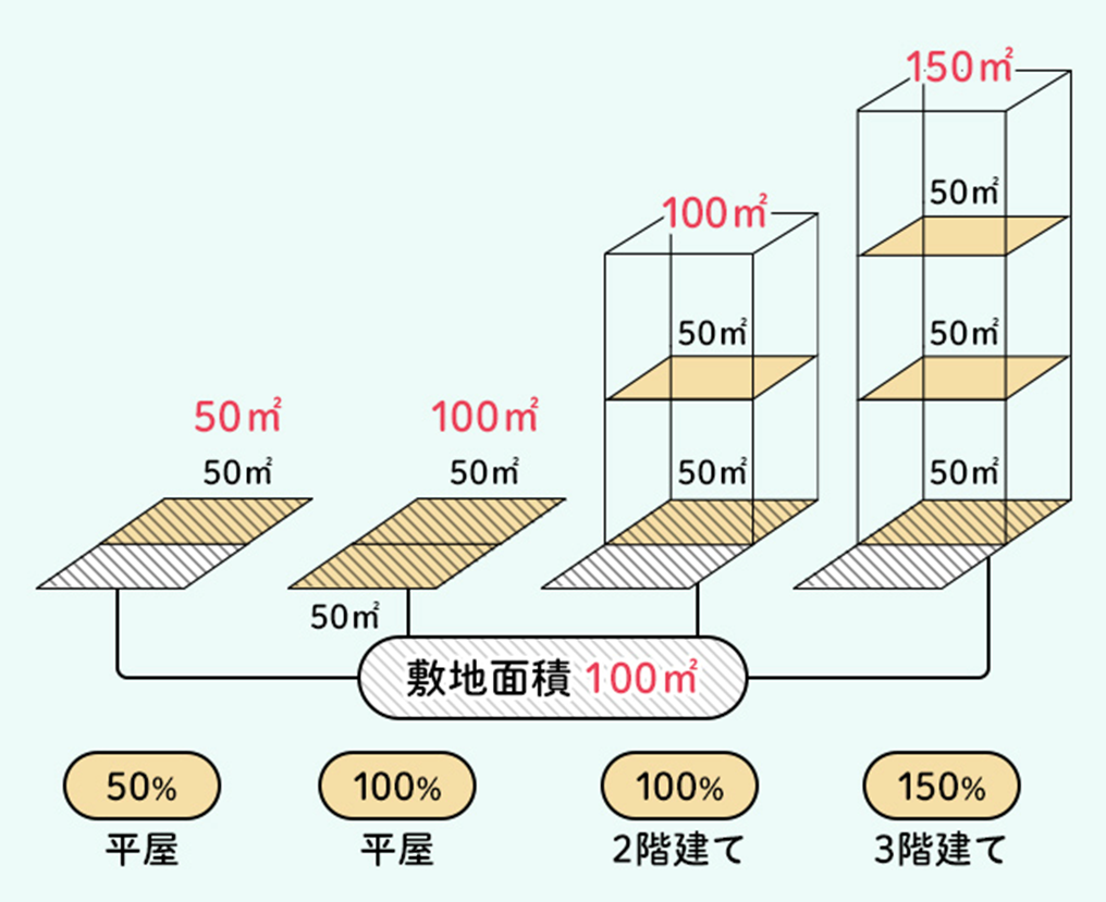 延べ床面積 ÷ 敷地面積 で計算されるものです。