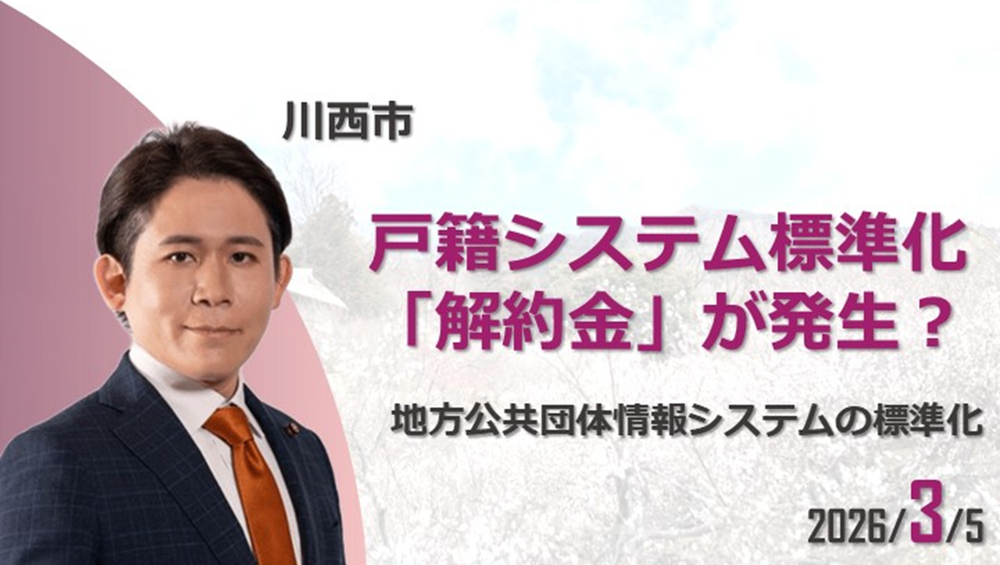 ホーム>政党・政治家>長田 たくや (ナガタ タクヤ)>【川西市】 戸籍システム標準化で「解約金」が発生?