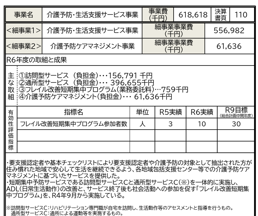 制度の点数は交付金にも関わってくることから、しっかりとMAXを目指すべきだとは思います。一方、実質的な効果を検討するうえで、令和6年度の川西市の実績、例えばフレイル改善プログラムの参加者は10名程度です。