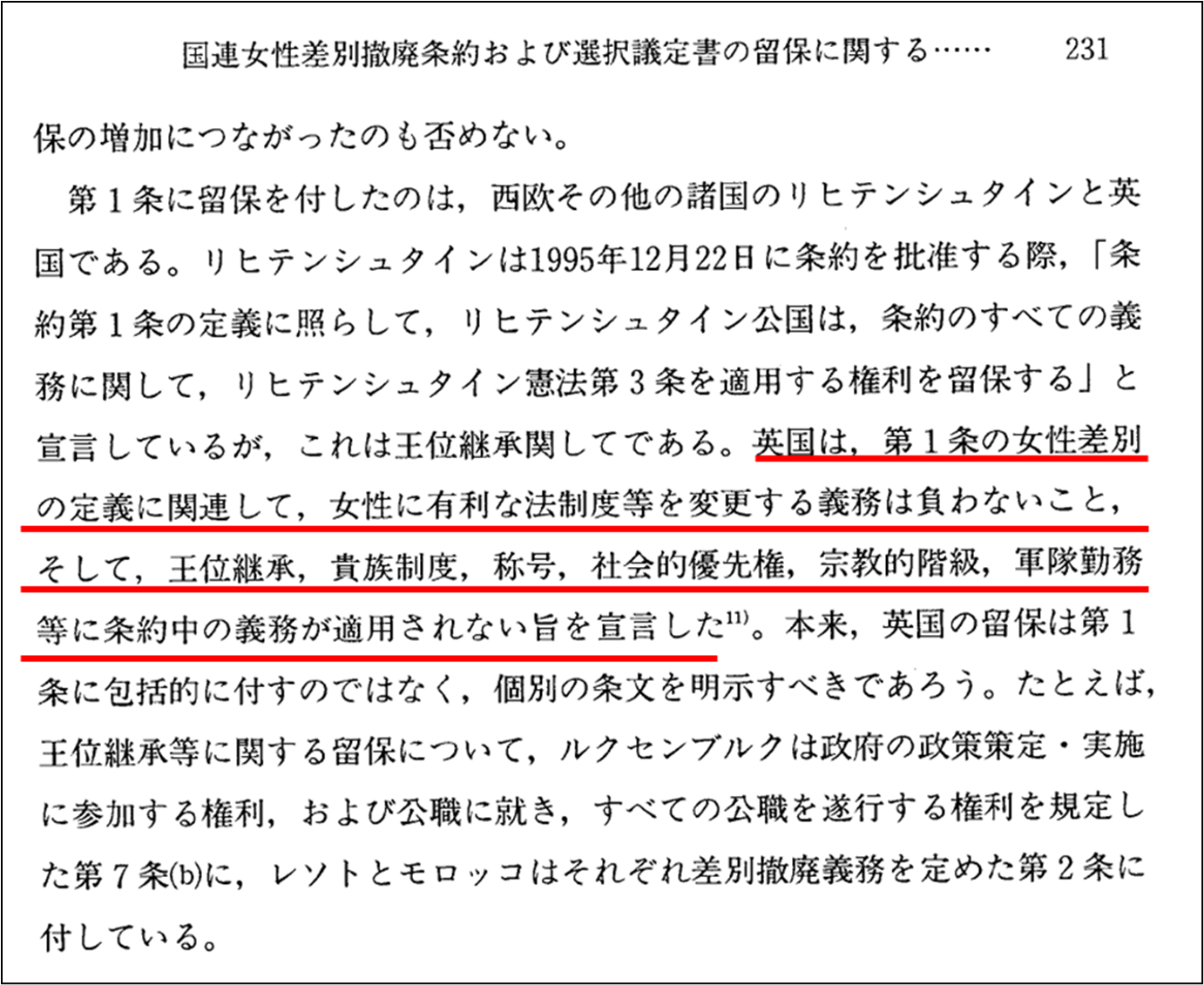 しかし、その背景には、日本が女性差別撤廃条約を締結した際に、「留保事項」を設けなかったことが大きいと思われます。